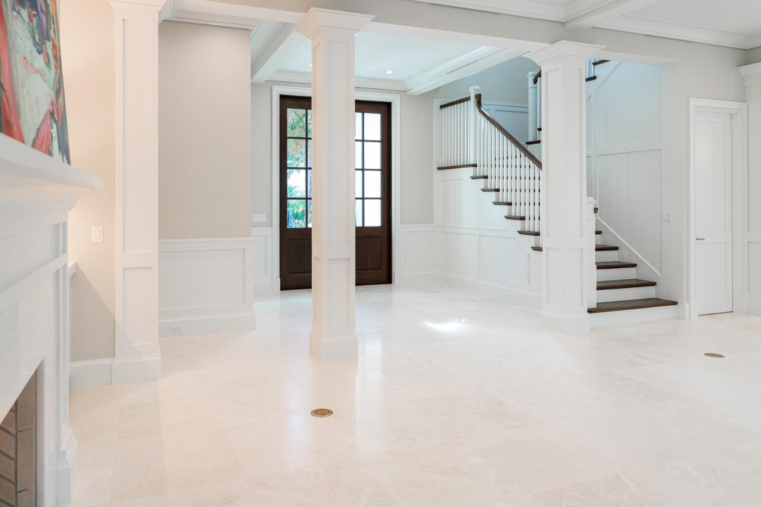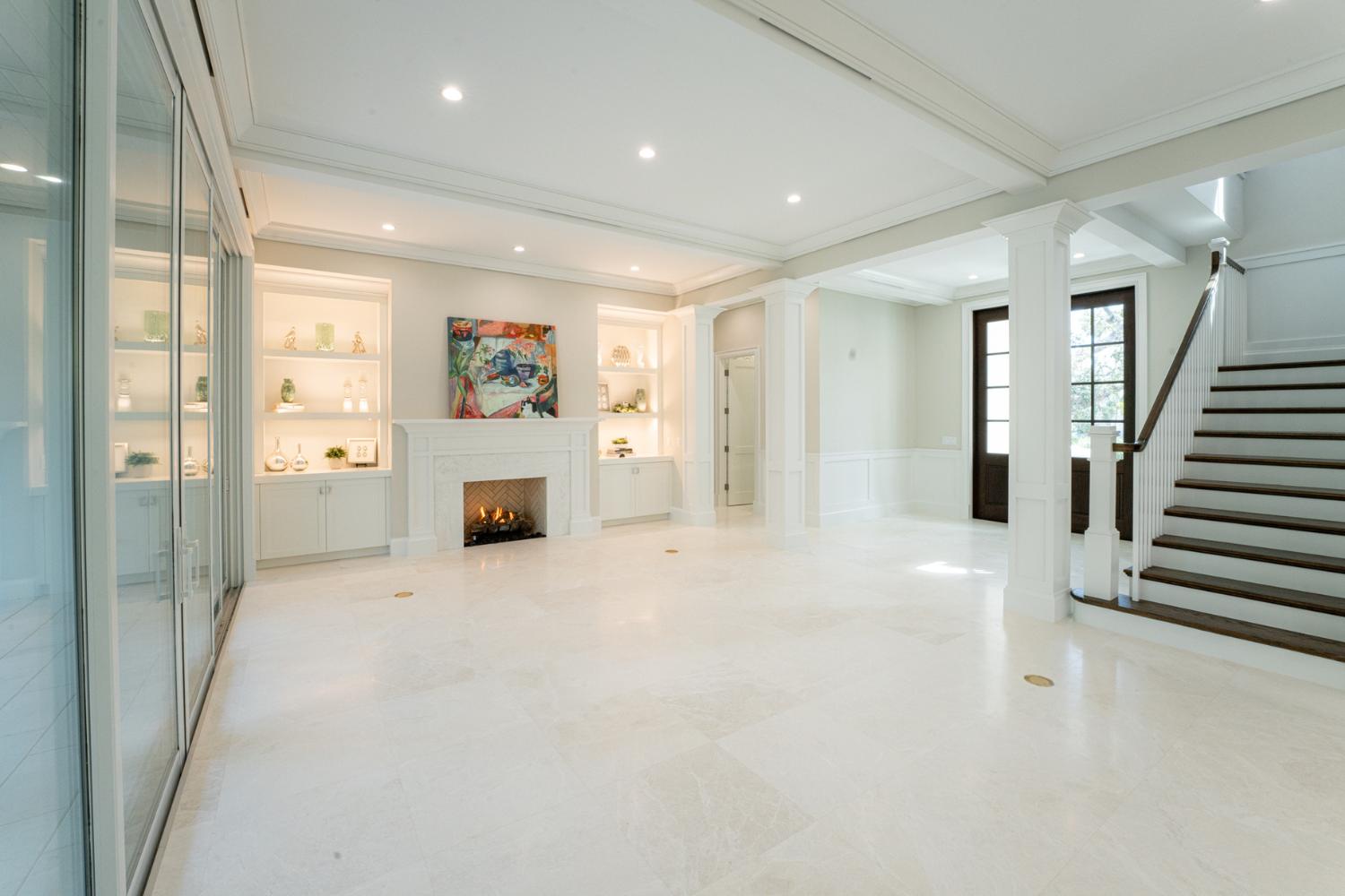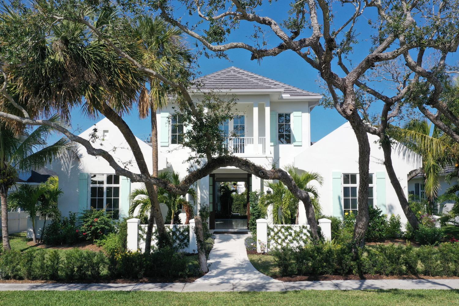 A wooden arched gate welcomes visitors to this stunning two-story island home. Dual impact glass windows with aluminum storm shutters grace the home’s custom West Indies-inspired façade. The main floor offers a great room with fine designer-selected finishings, a gourmet kitchen with an adjacent spacious office, a unique rear garage to preserve natural oak canopy, and on the opposite wing, a fabulous master suite with double walk-in closets.